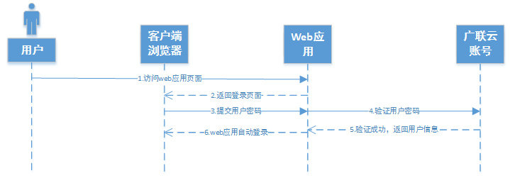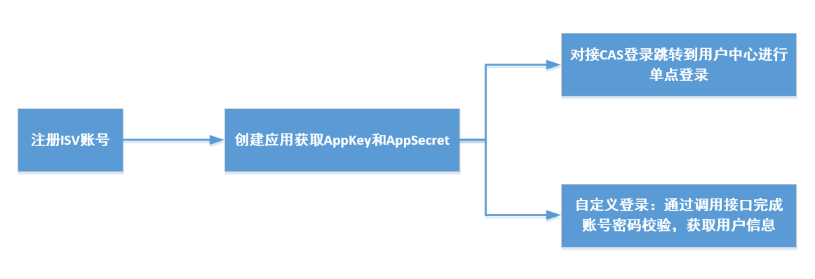 应用系统无需与用户中心实现单点登录,仅通过调用后台接口,完成用户密码校验,即可获取用户信息,自定义登录方式,流程如下: