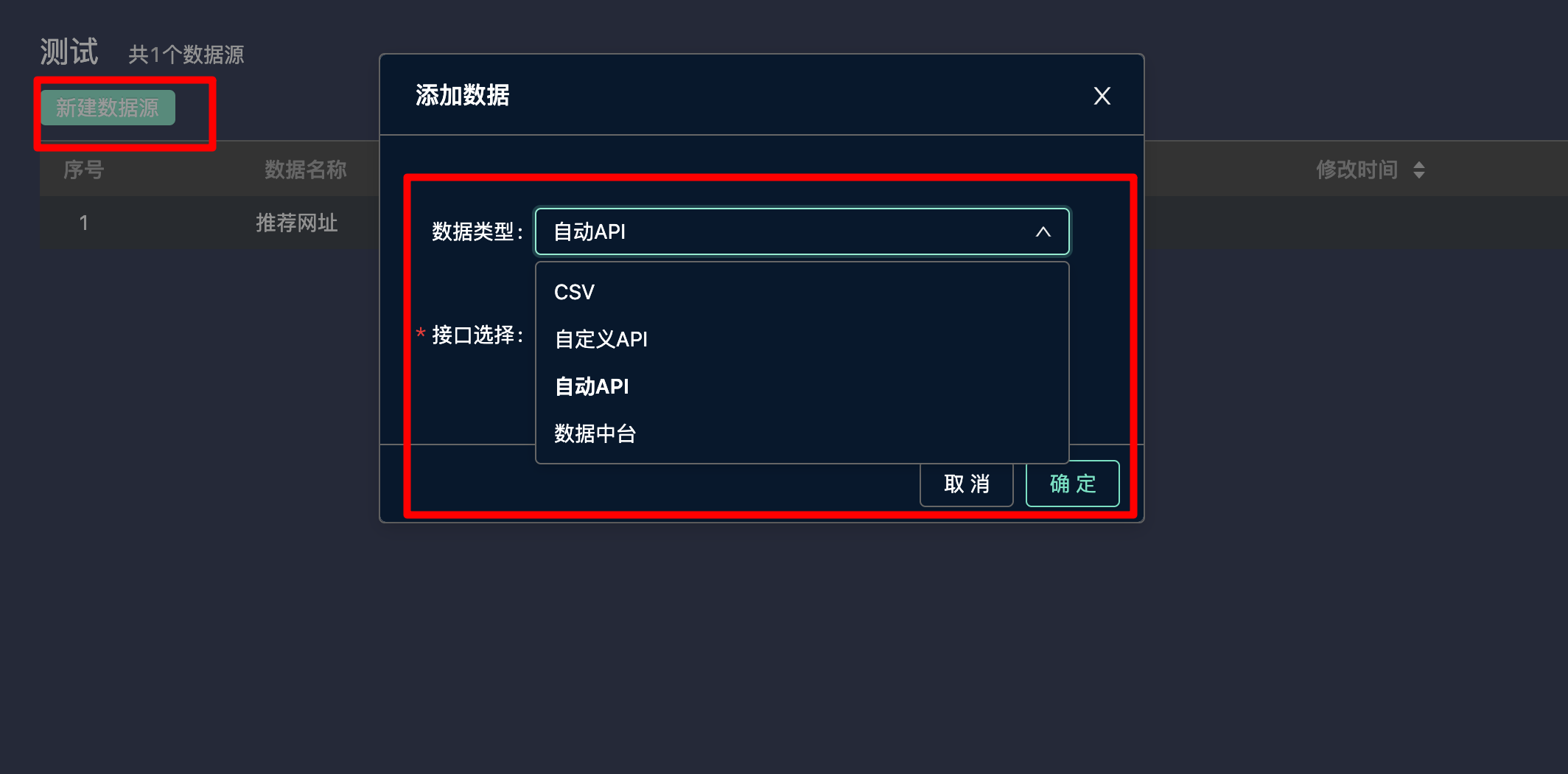 数据源 可在数据源下拉框中选择上传的数据源