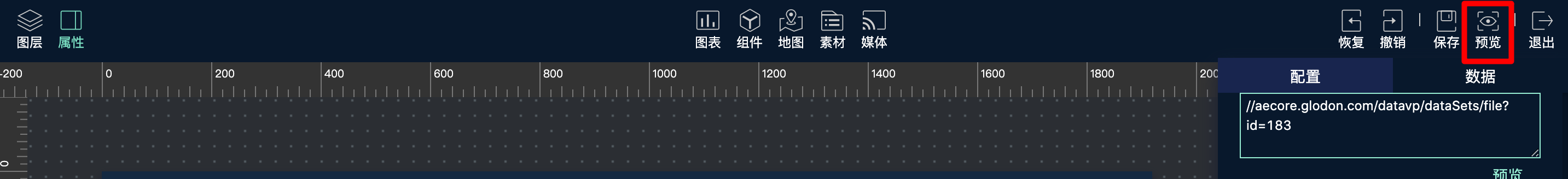 • 大屏编辑页面右上角的预览按钮