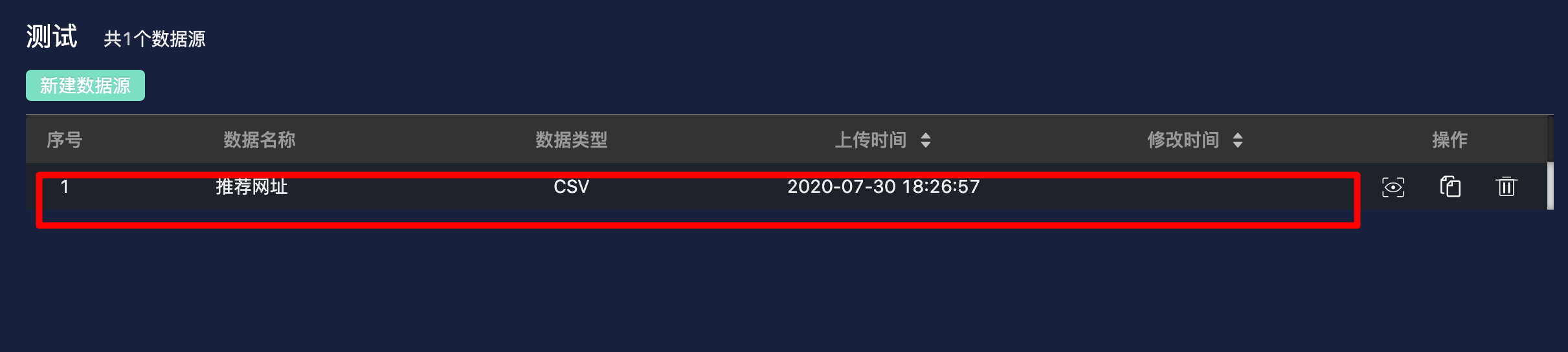 • 上传成功的数据会在数据管理列表中呈现