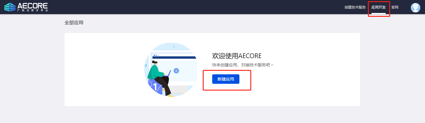 登录AECORE,并创建应用,创建应用后即可获取appkey、appsecret,这是调用服务的秘钥请妥善管理。