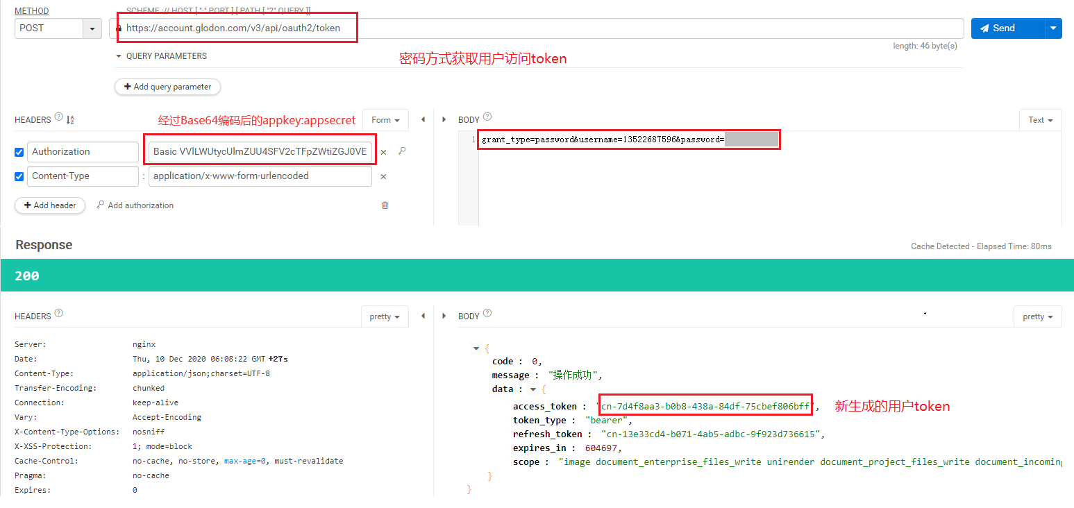 1、获得用户Token,作为访问API的用户凭证。