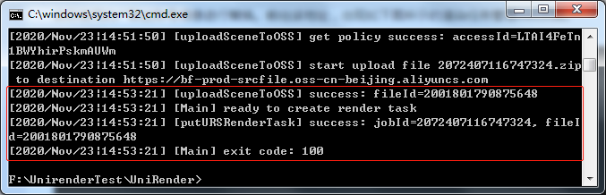 在实际产品集成时,场景上传过程由业务产品通过交互界面操作触发,所有命令参数由产品设置和导出,不会出现本步骤中的命令行画面。